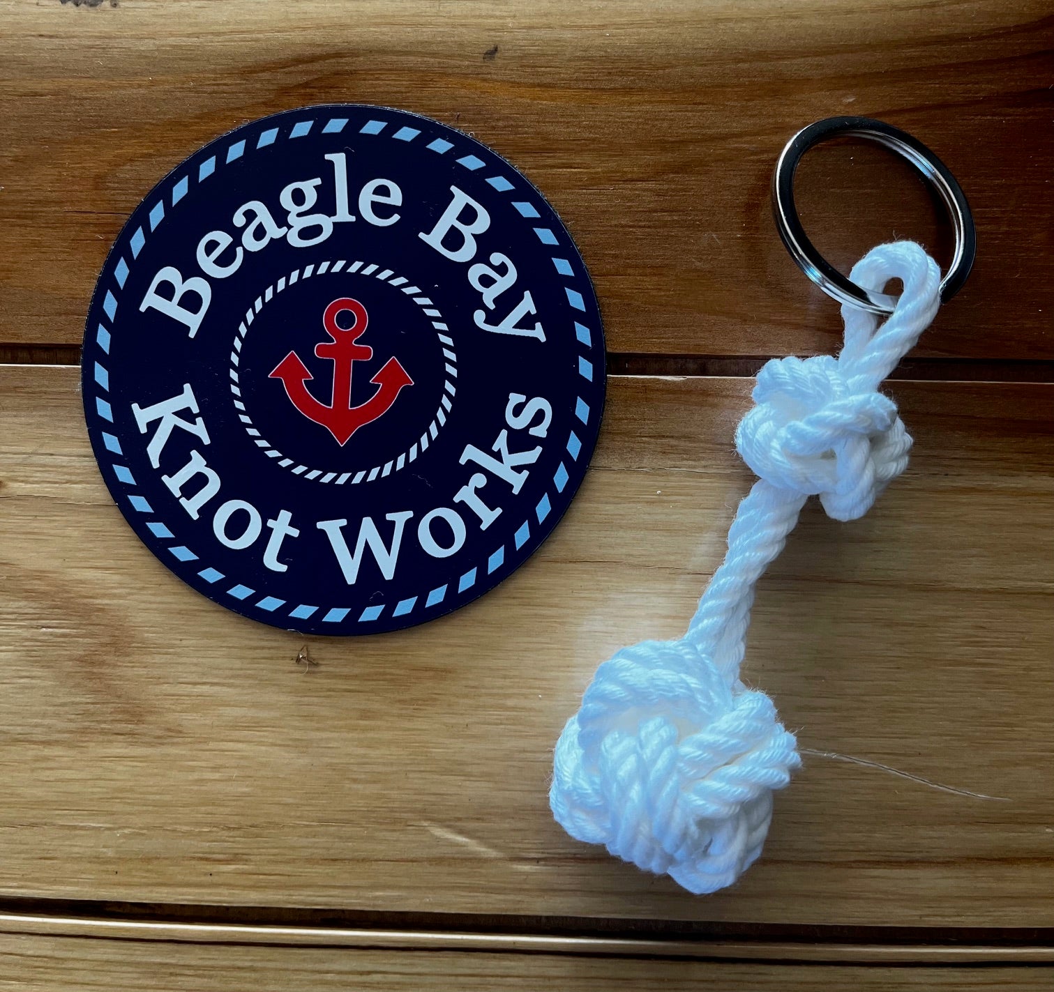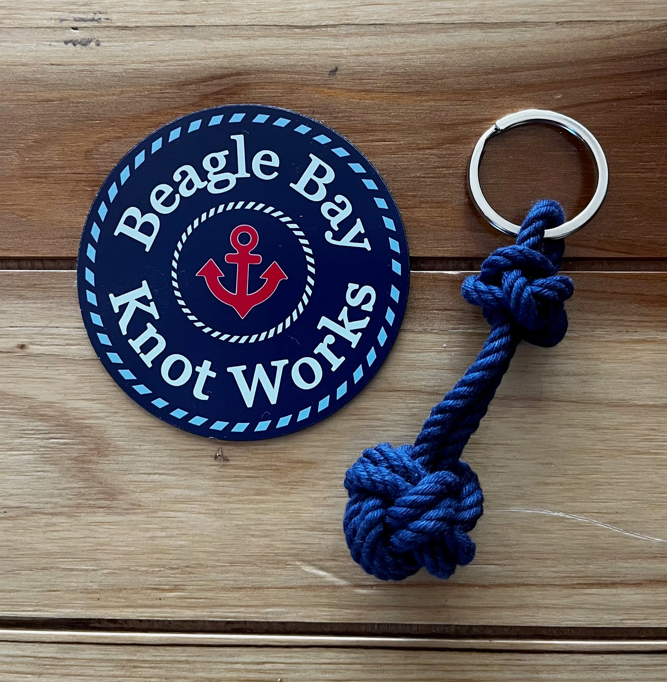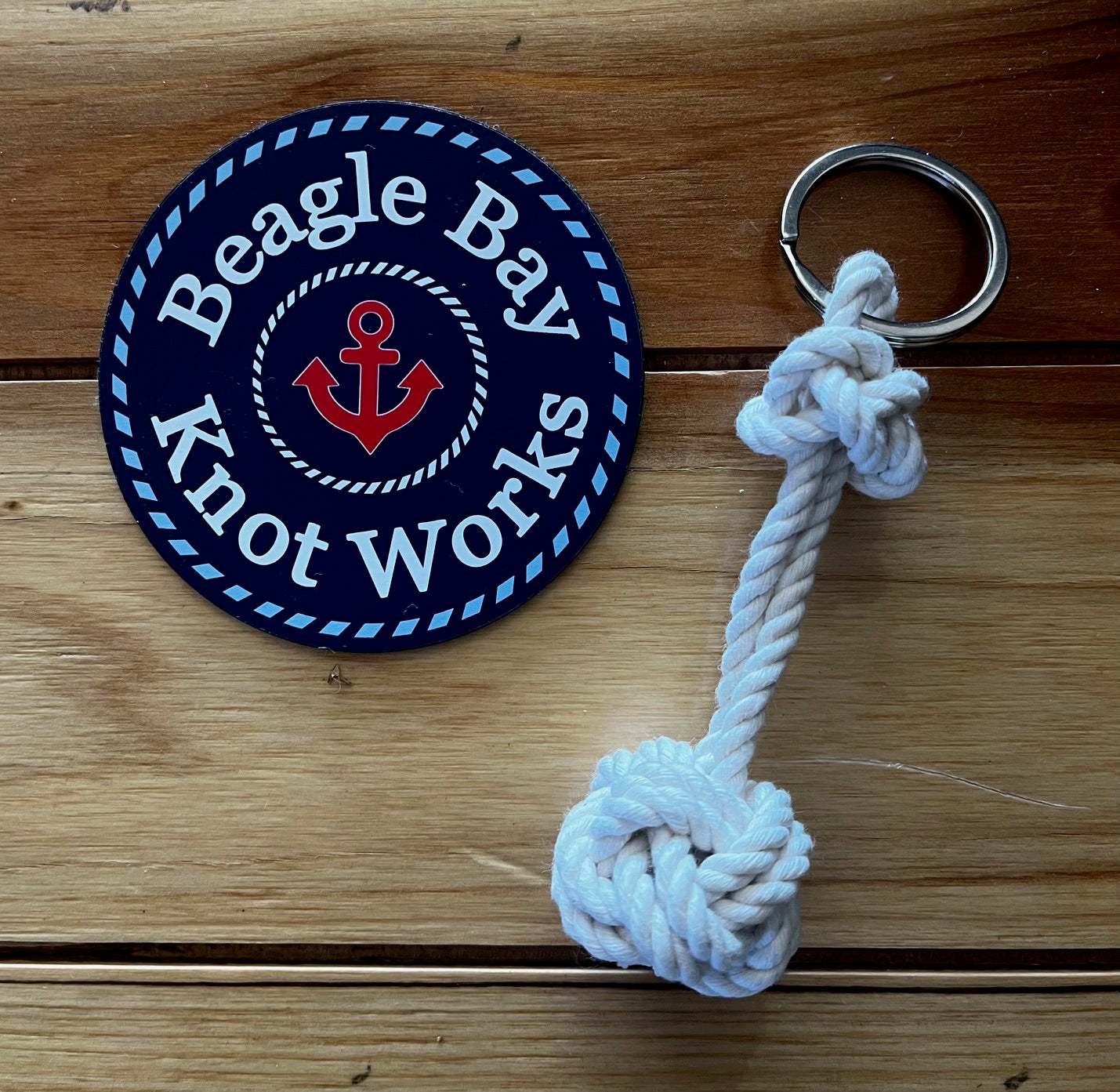 The ultimate knotical key accessory- our Dockside Key Ring measures approximately 3 inches long without the ring and is tied in our 100% Cotton Cord.  ( Our cord is made in the USA )  A single diamond knot starts this one and a double diamond adds something to hold on to-   Lots of color choices for you!